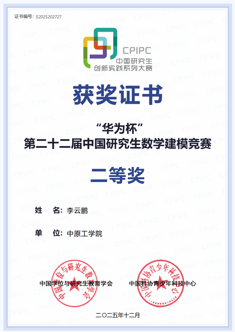 在2025年“华为杯”第二十二届中国研究生数学建模竞赛再创佳绩,共获国家级奖项9项,包括国家二等奖4项、三等奖5项,展现出不雅视频